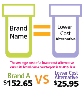 The average cost of a generic drug versus its brand-name counterpart is 80-85% less.